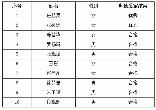 根据《伟德2021年专业技术职务任职资格评审工作安排意见》《伟德教师职业道德考核办法(修订)》《伟德教师师德失范行为处理办法(试行)》等文件的相关要求,经伟德2021年11月2日党政联席会议讨论研究,对庄想灵等10位同志申报2021年度职务职称评审师德考核鉴定公示如下: