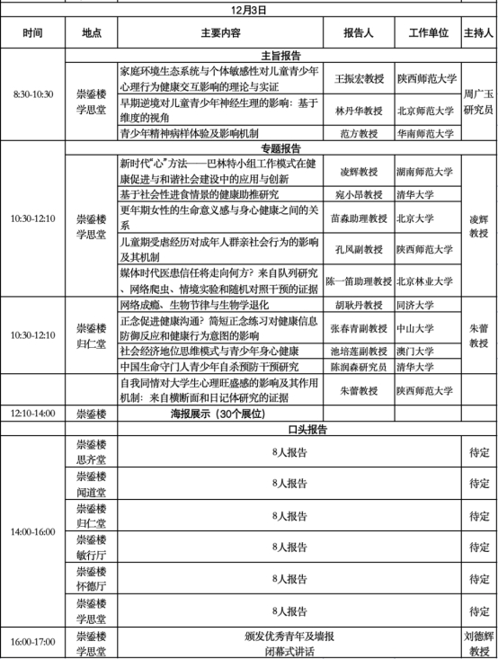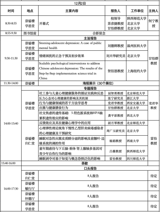 12月2-3日召开学术会议,含大会主题报告、分组报告和墙报展示等。