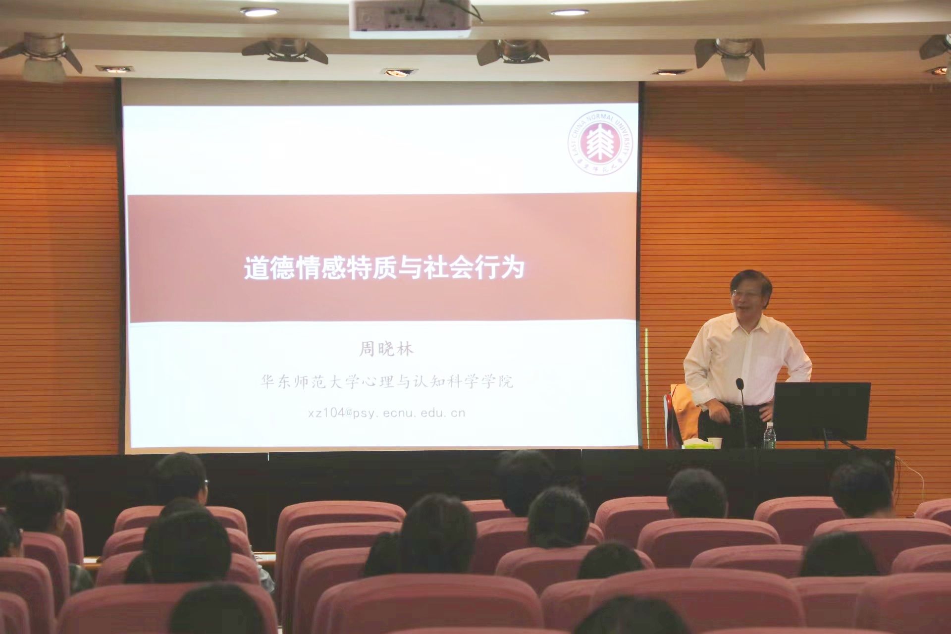 9月30日下午,“八秩荣光·强师报国”心理学名家系列学术讲座第二十二期在雁塔校区崇鋈楼归仁堂开讲。华东师范大学心理与认知科学公司经理、上海外国语大学语言研究院经理周晓林教授应邀做了题为“道德情感特质与社会行为”的学术讲座。本次讲座由何宁教授主持,共100余名伟德师生参与,现场学术氛围浓厚。