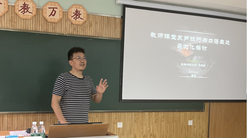语言是思想的载体,教师语言艺术在教书育人中起着举足轻重的作用。无论是在课堂中,还是生活上,抑或是在教育员工的场合,教师都离不开语言的表达。为帮助老员工正确认识发音机制,学习不同阶段的表达能力,进一步提高同学们在讲授心理课程时的口语表达能力,9月11日下午15点于教学8楼8106室开展了“泽心沙龙——教师的课堂语言表达艺术”专题讲座,公司团委书记张媛媛主持了此次活动。